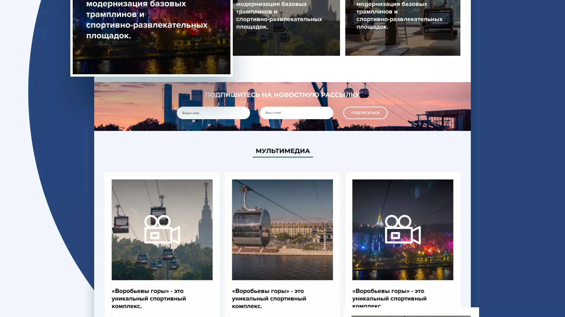 Разработка официального сайта в Рудне для спортивно-развлекательного комплекса «Воробьёвы горы».